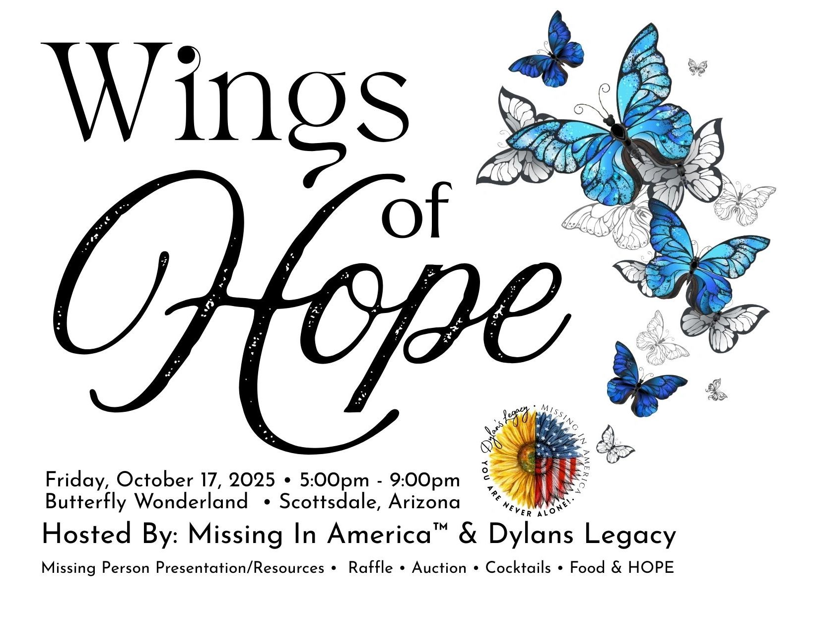 Join us for our very first Wings of Hope charity fundraiser — a heartfelt event dedicated to raising awareness and support for missing persons. We're calling on our community to help make it unforgettable.